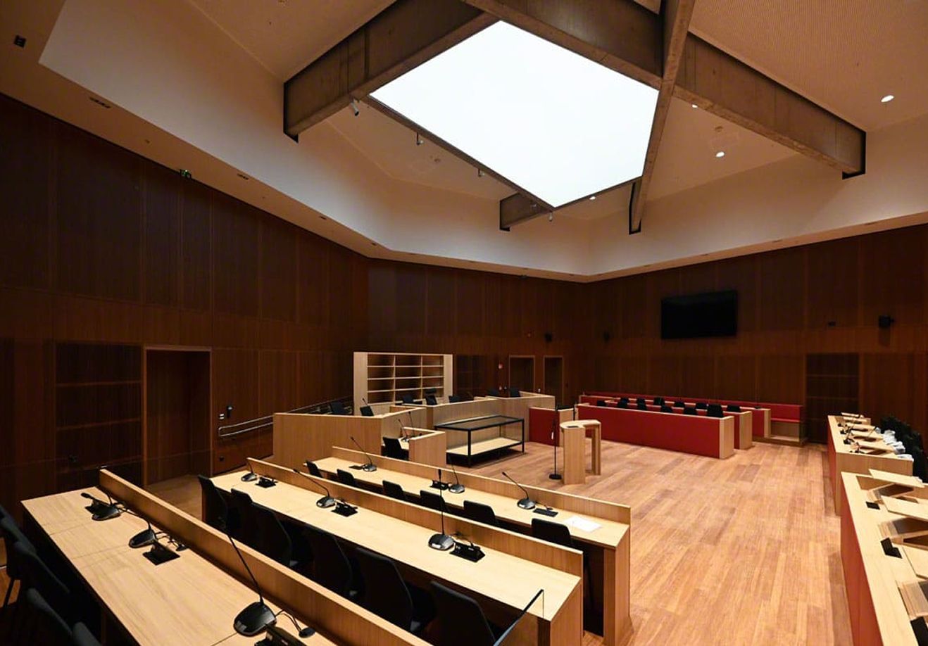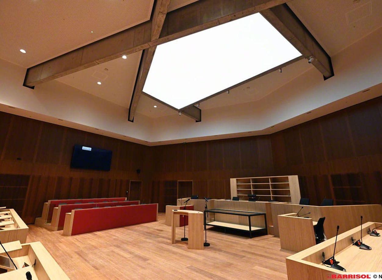 Dans le cadre du nouveau tribunal de justice de Namur, nous avons eu l’honneur de concevoir et d’installer une toile tendue lumineuse, offrant un puits de lumière spectaculaire pour la cour d’assises. Ce projet met en valeur tout le savoir-faire et l’innovation de notre équipe, avec une solution sur mesure qui sublime l’architecture et l’espace intérieur.